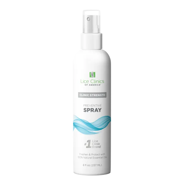 Our preventive lice spray contains essential oils that attack a louse’s olfactory nerves. The preventive spray will smell pleasant to you and your child, but not to lice. Since lice move to new hosts primarily through head-to-head contact, they are less likely to move to a head that smells like this “stinky” spray.